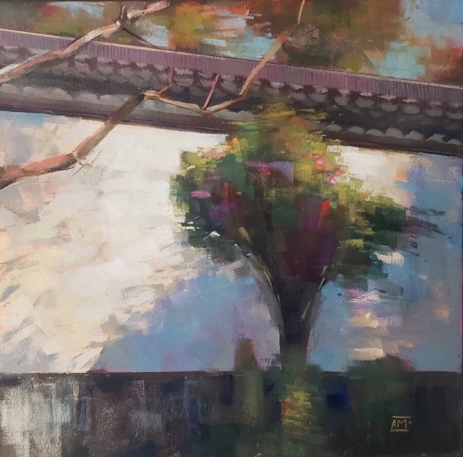 “I can remember the greatest gift my parents gave me at the age of 4 was the Crayola Crayon set of 72 colors! I have been enthralled with color ever since. I’m fascinated with light and shadow patterns. I try to imbue all my paintings [whether abstract or representational] with a source of light to make them glow from within. I often say that these paintings are like good works of fiction; bits of reality infused with imagination. Where you the viewer will finish the story." ~ Laura Pollak