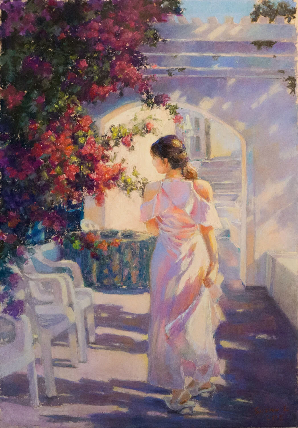 This is such a timely and thought-provoking painting. It is a very relatable subject after this year plus that we just went through. The composition is simple yet effective. The color harmony is wonderful. The use of changing color while maintaining the strength of the value shape is masterfully done in the windowsill and molding as well as in the curtain. The little bits of sunlight coming in is just enough to evoke a sense of hope. It really got to me emotionally and I found myself returning to it over and over. Judge Susan Kuznitsky